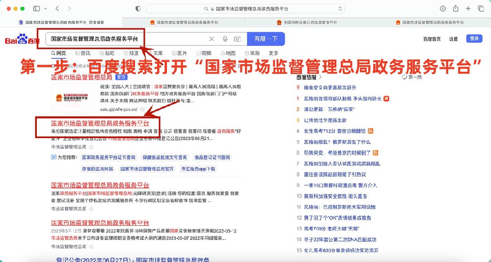 百度搜索“國家市場監督管理總局政務服務平臺”