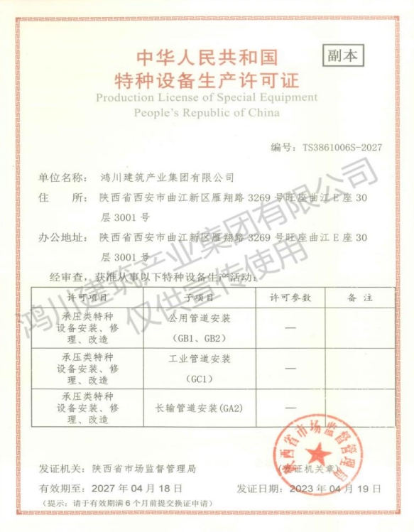 鴻川建筑產(chǎn)業(yè)集團有限公司資質范圍及等級: